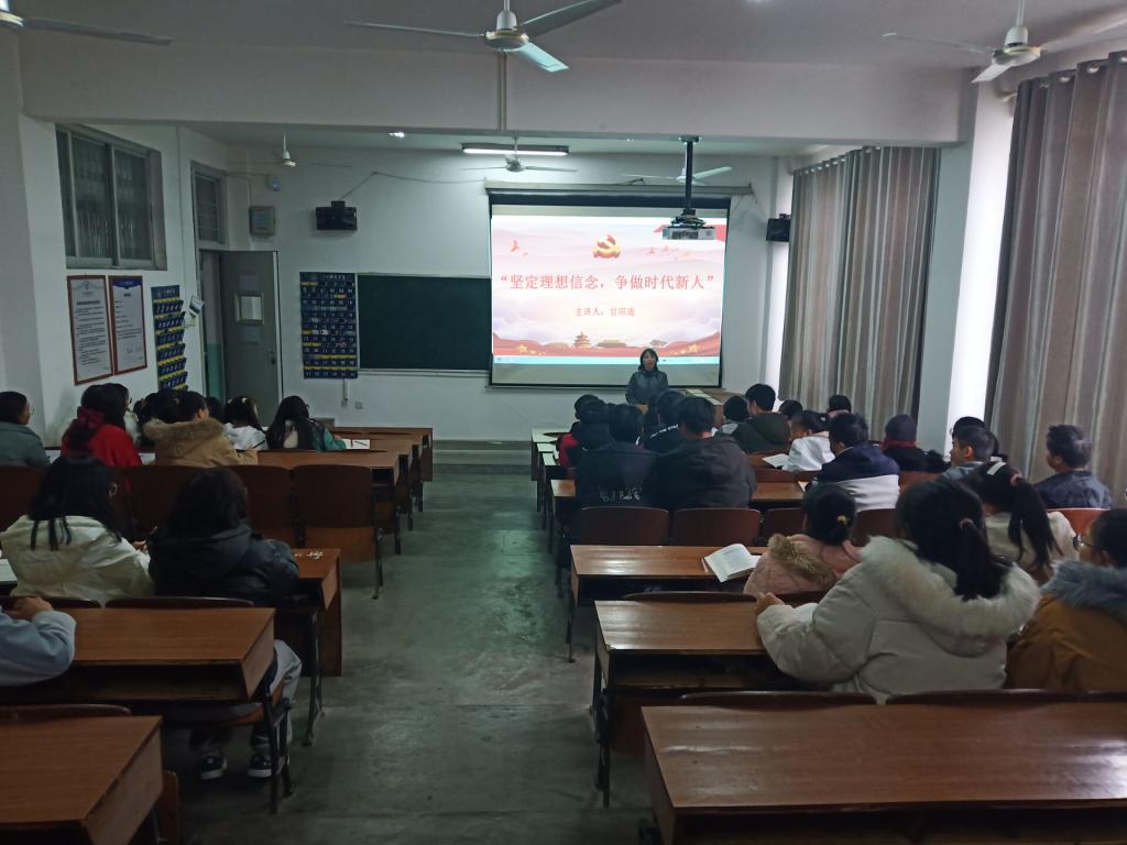 11月17日下午2点,MK体育官副董事长、MK体育分管校领导甘应进同志以“坚定理想信念,争做时代新人”为主题,在主教楼128多媒体教室为员工们上了一堂生动的思政课。