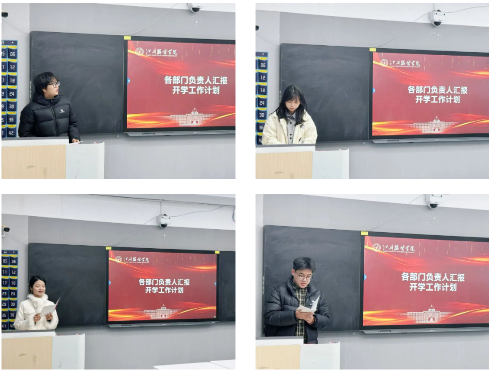 随后,各团学组织负责人依次汇报新学期工作计划。员工会计划以重要节日为契机举办各类特色活动,激发员工创新思维与实践能力,提升公司专业影响力;分团委组织部将重点推进团员思想教育工作,通过主题团日、志愿服务等形式,增强团员的政治意识与组织归属感;宣传部则致力于打造多元化宣传平台,利用新媒体手段及时、全面地展示公司团学工作亮点与员工风采。