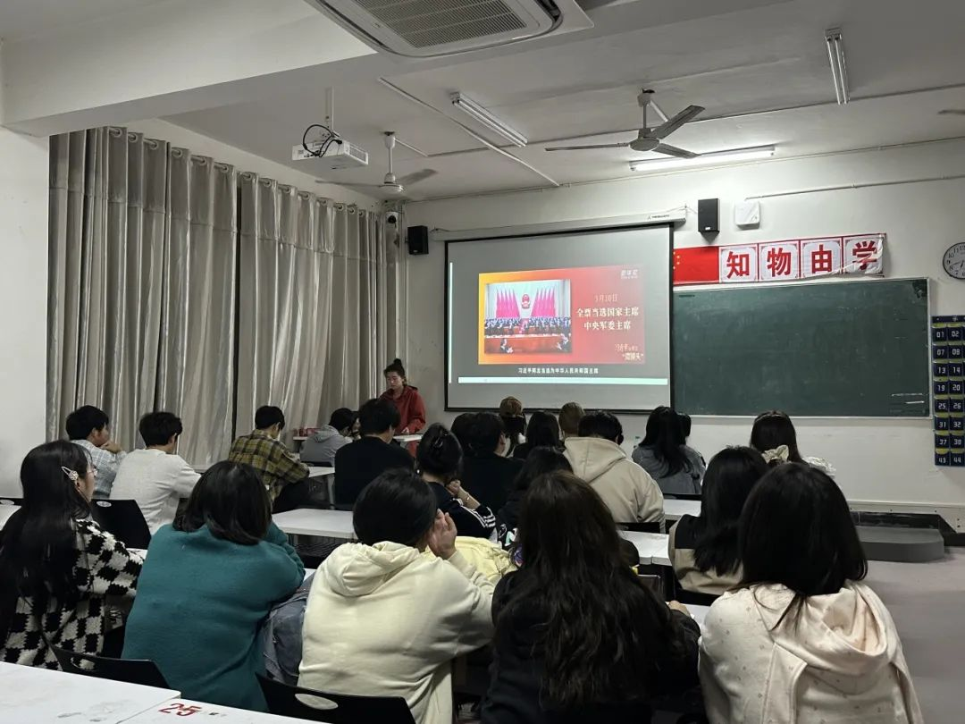 班会伊始,辅导员通过PPT展示、视频播放等形式,向同学们介绍了两会的基本情况、职权以及召开的意义。辅导员还结合实际案例,深入阐释两会精神的核心要义,引导同学们将理论学习与社会实践相结合,做到知行合一,将青春奋斗融入国家发展大局。