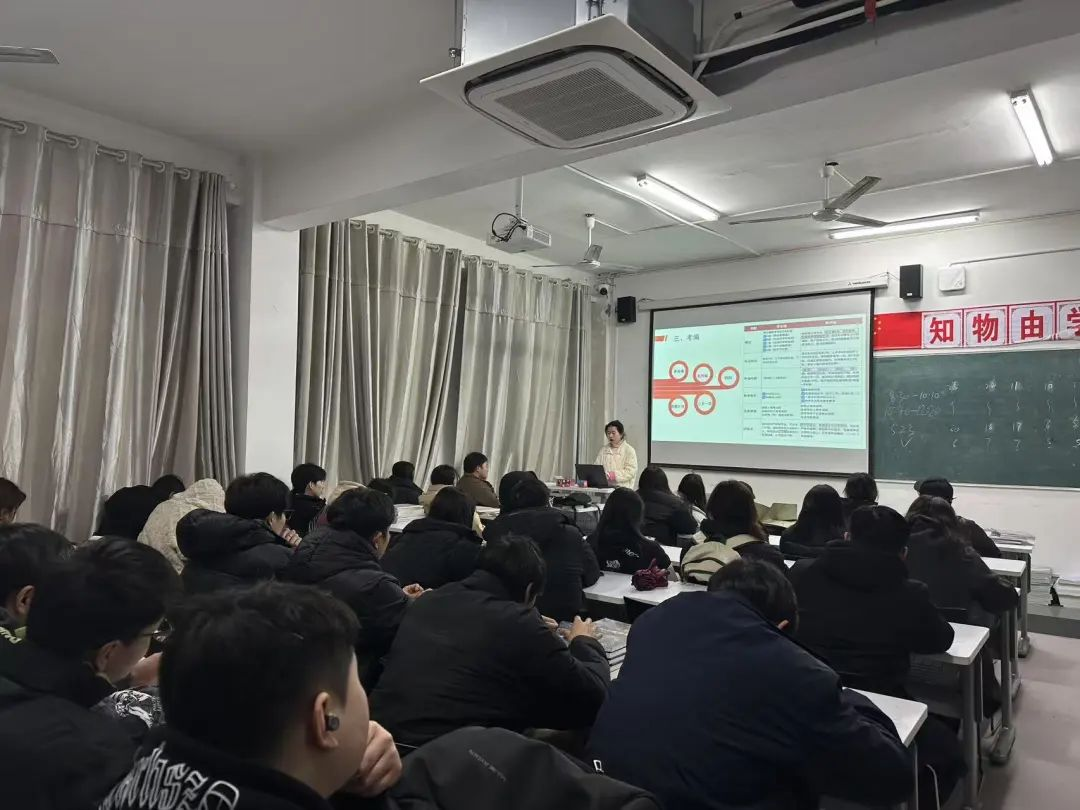 班会伊始,辅导老师先引导员工分享毕业方向及准备情况,发现多数同学有明确规划。接着,老师分析当下严峻就业形势,指出不管考研、考公、考编还是就业都需尽早准备、全力以赴。最后老师分析各方向优缺点,强调适合自己才是最好的,鼓励员工正确认识自我,做好职业规划,选定方向后全力以赴。