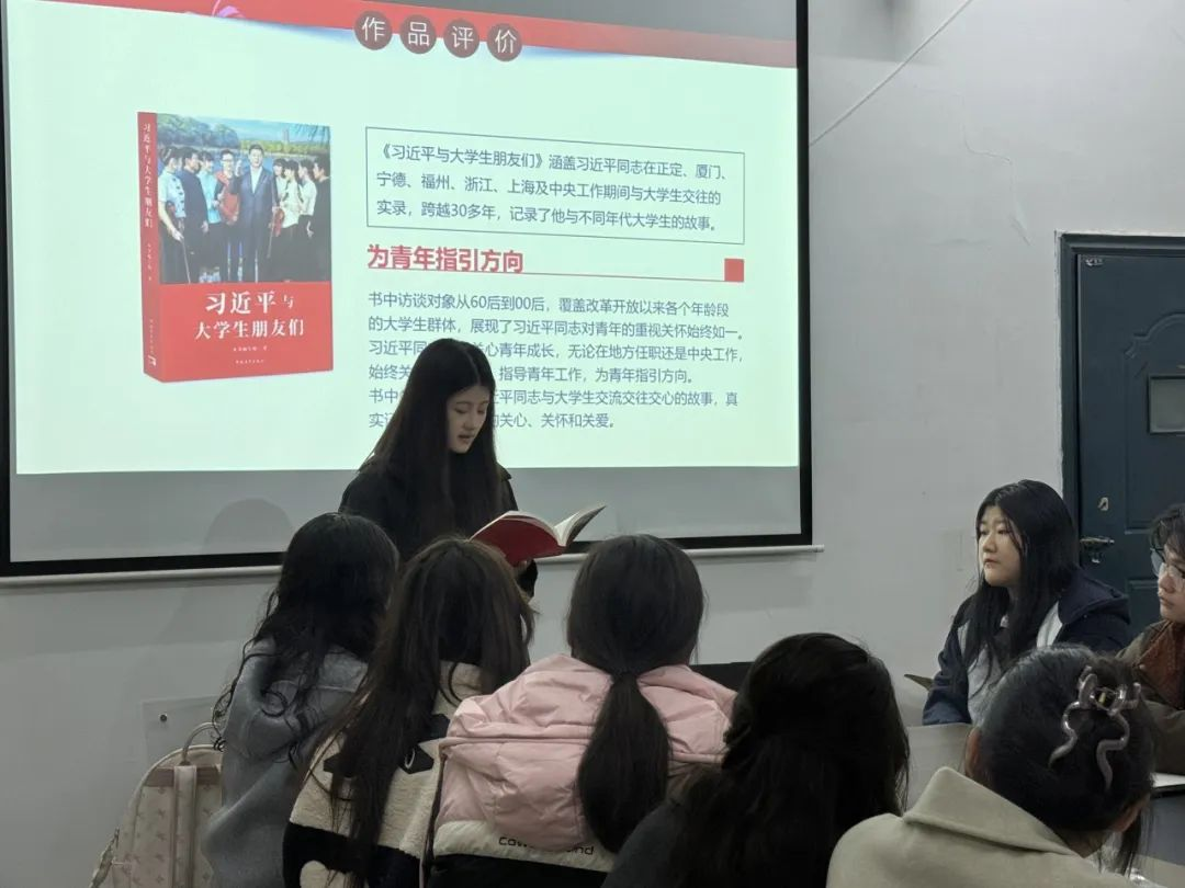 活动伊始,分团委组织部部长徐静雯带领全体成员共同学习了《习近平与老员工朋友们》中的精彩文段。她声情并茂地朗读了书中记录的习近平总书记与老员工交往交流的生动故事,并深入剖析了习近平总书记对青年成长成才的殷切期望和嘱托。徐静雯部长的领学,让在场的每一位员工都深受启发,更加坚定了投身祖国建设事业的决心。