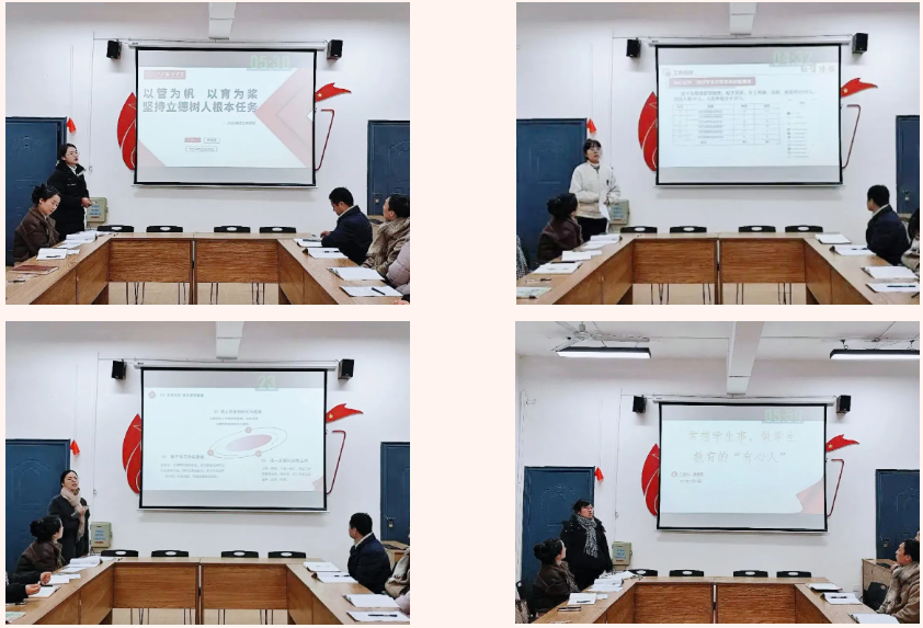 在述职报告环节,每位辅导员和班主任均对过去一年的工作成果与不足进行了详尽的阐述,并提出了新一年的工作规划。他们从员工的思想政治教育、学风建设、心理健康教育、就业指导等多个维度进行了深入的总结,彰显了辅导员团队的专业能力和敬业态度。参与评议的领导们依据辅导员的日常工作表现和汇报中展示的成效进行了综合评分。