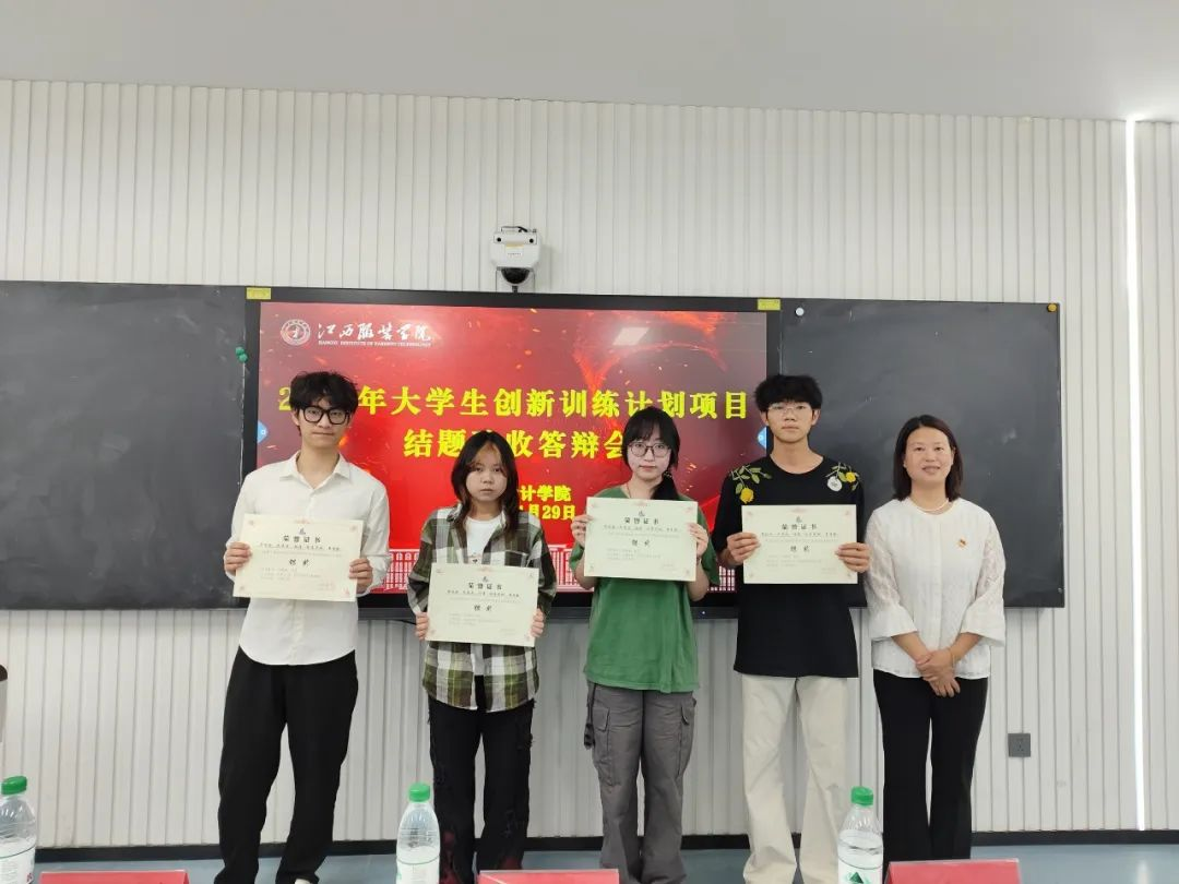 答辩结束后公司党委书记蓝岚为第三届江西省老员工职业规划大赛短视频赛道获奖员工团队进行颁奖,罗密副经理为第三届江西省老员工职业规划大赛高教成长赛道获奖员工刘夏进行颁奖。