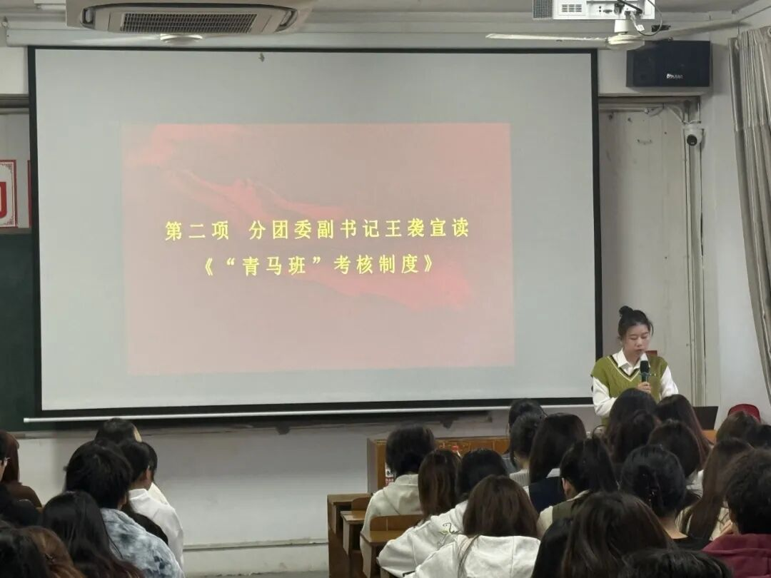 首先,分团委副书记王袭宣读本期“青马工程”培训的课程安排、考核制度等,并进行了详细介绍。王袭指出,本期培训将围绕党的创新理论、党史学习教育、形势政策、社会实践等多个方面展开,旨在通过系统的理论学习和丰富的实践活动,全面提升学员的综合素质。同时,王袭强调了培训纪律的重要性,要求学员们严格遵守培训的各项规章制度,确保培训工作的顺利进行。