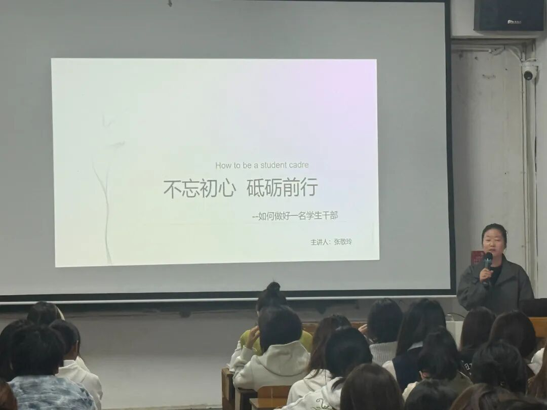 开班仪式结束后,紧接着开展了青马班第一课的授课,本次课程以“不忘初心 砥砺前行——如何做好一名员工干部”为主题。由分团委书记张敬玲主讲,她结合自身多年的员工工作经验,从员工干部的角色定位、职责使命、工作方法、自身修养等方面进行了深入浅出地讲解。她强调,员工干部是联系老师和同学的桥梁和纽带,要始终牢记为同学服务的宗旨,以身作则,发挥模范带头作用。在工作中,要善于沟通协调,注重团队合作,不断提升自己的组织能力和领导能力。同时,张敬玲还向学员们分享了一些员工干部工作中的实际案例,引导学员们思考如何在实际工作中解决各种问题,提高工作效率和质量。