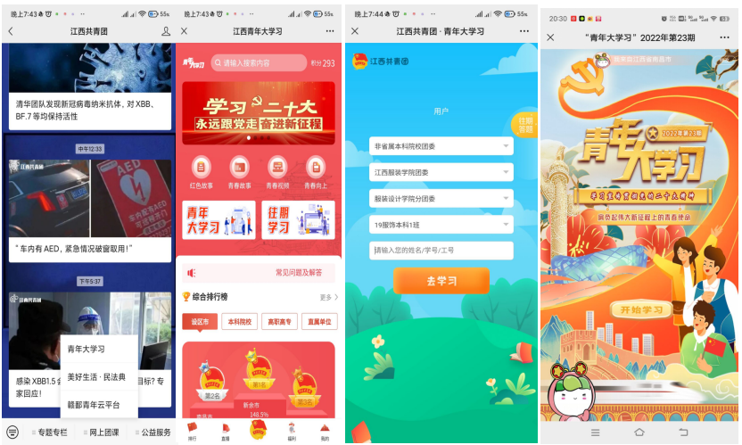 ①关注“江西共青团”微信公众号,点击公众号底部菜单栏“网上团课”进入答题,选择“青年大学习”,我们将于每周一中午12点更新学习链接。