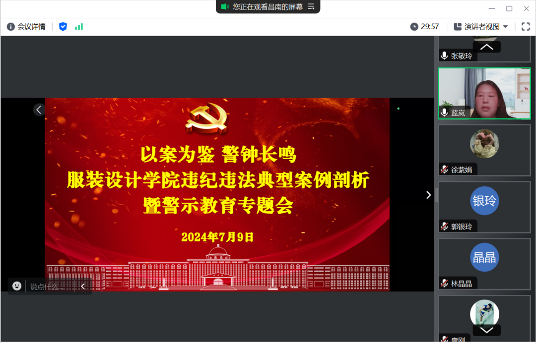 MK体育通讯员:戴雅宁为深入学习贯彻习近平总书记关于加强党的纪律教育的重要论述,扎实推进党纪学习教育走深走实,7月9日晚7时,MK体育于腾讯会议线上召开违纪违法典型案例剖析暨警示教育专题会,公司党政班子成员及全体师生党员参会。周洪英主持会议。