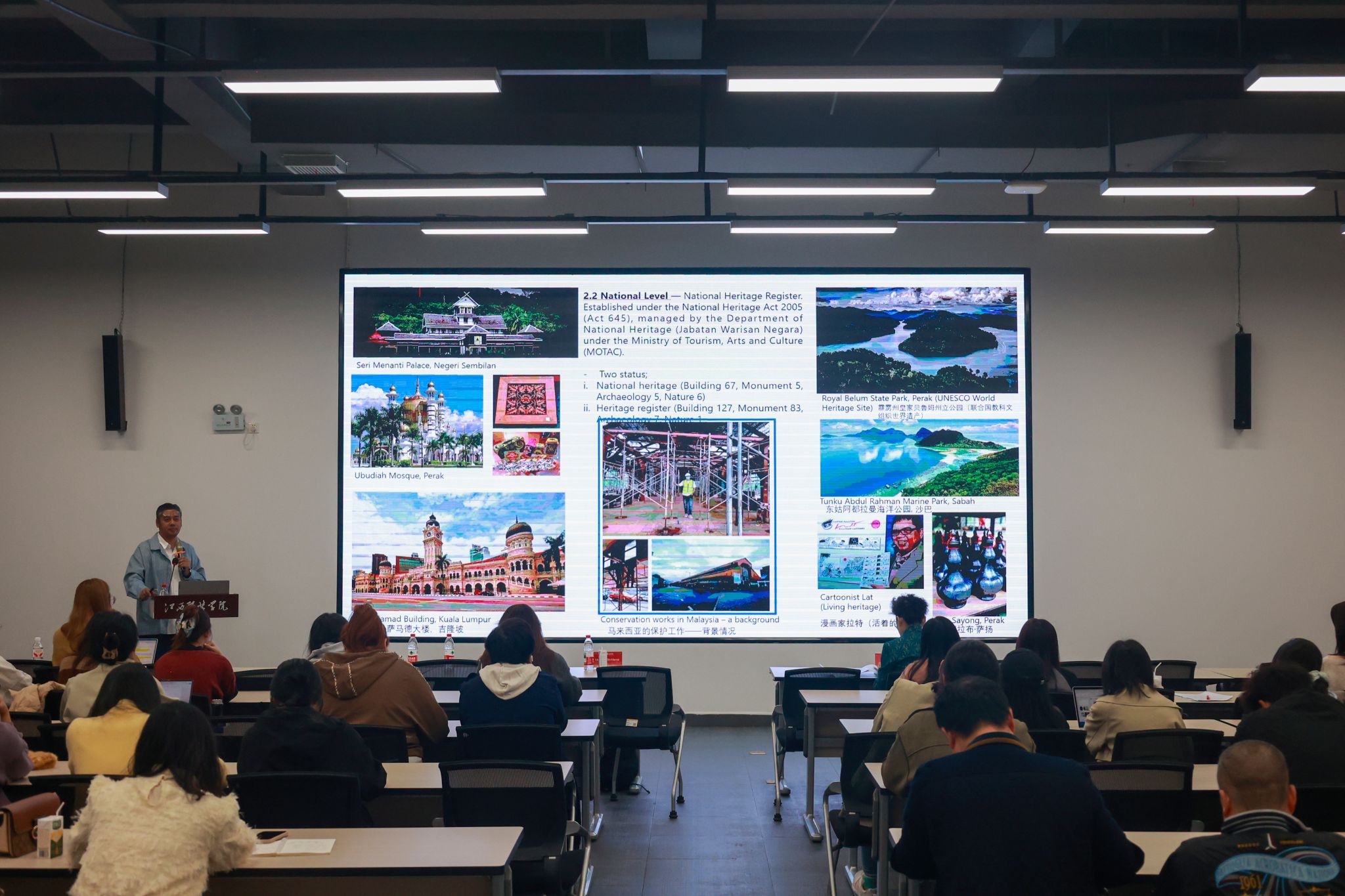 Dr. Jaki博士是马来西亚理科大学博士生导师,长期从事遗产保护与文化研究,具有深厚的学术造诣与丰富的实践经验。他在报告中系统阐述马来西亚文化遗产的保护体系——从联合国教科文组织(UNESCO)认定的世界级遗产,到国家、省州及社区层面的多层次传承机制。他指出,非物质文化遗产不仅是民族记忆的延续,更是社会文化创新的源泉。