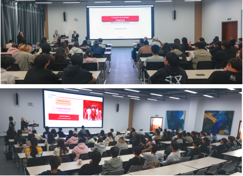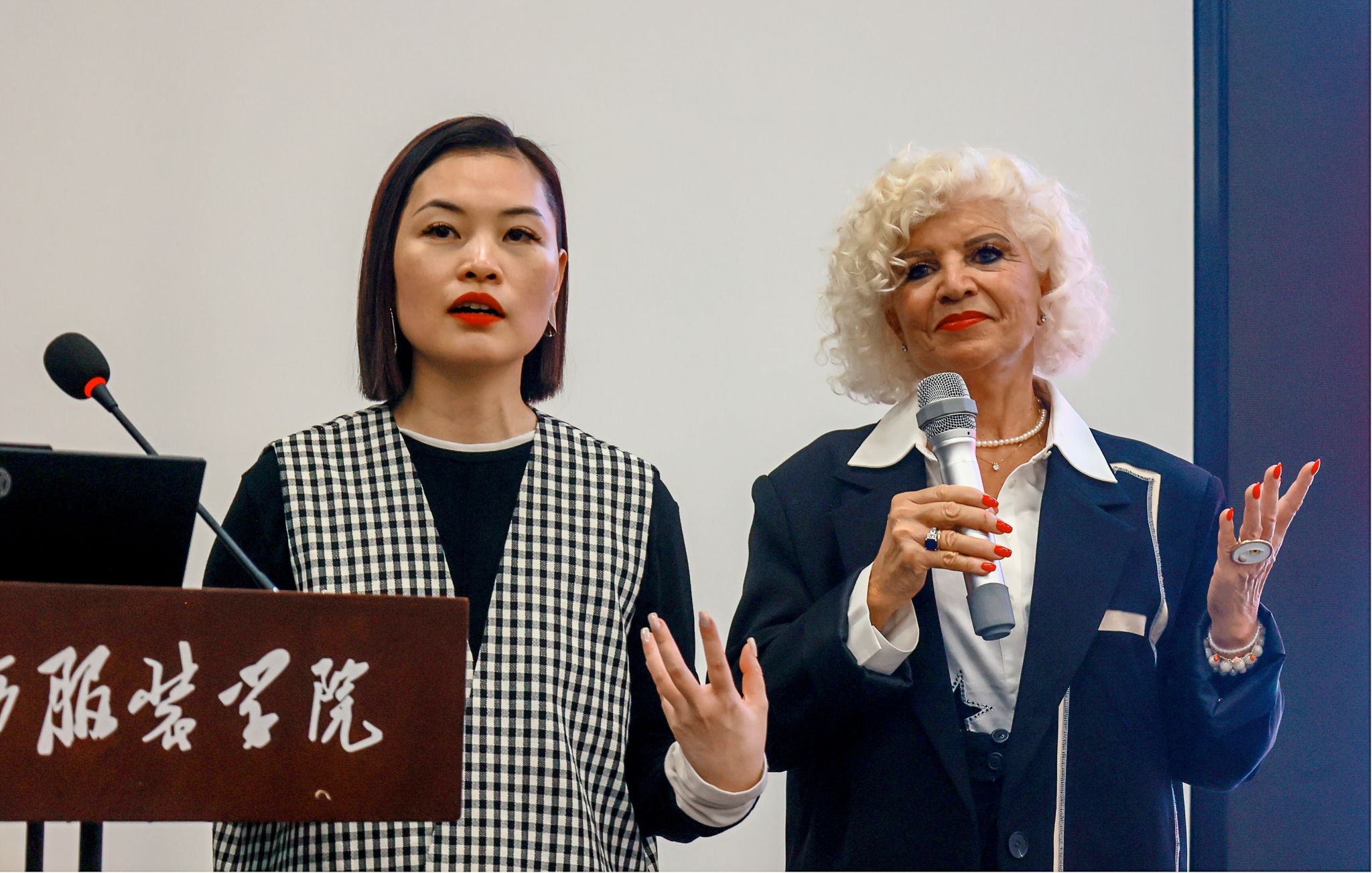 此次讲座主要围绕时尚趋势、品牌DNA、创意总监角色、可持续发展等前沿议题展开深度分享。论坛伊始,Zora Gerault经理以“时尚的未来:艺术与商业的对话”为题,系统梳理了2026/27至2027/28秋冬的国际流行趋势。她从色彩、廓形、材质三大维度切入,结合WGSN、Nelly RODI等权威趋势机构的预测,指出未来时尚将呈现“趋同与演变”并行的特征。她强调,在人工智能与数字化工具日益普及的今天,设计师更应保持独立的审美判断与创作视角,“用AI与趋势来细化,而非替代你的视角”。博士特别指出,真正的创新来源于对“弱信号”的敏锐捕捉——来自街头、艺术、跨文化现场的观察与实验。她以Chanel、Comme des Garçons、Alexander McQueen等品牌为例,阐释了如何通过清晰的品牌DNA构建历久弥新的时尚标识。