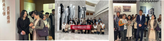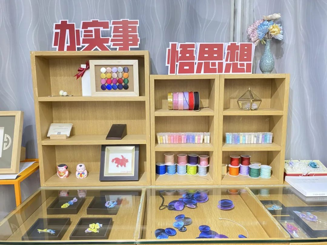 在吴江桑尚(新旗艺)丝绸有限公司,公司副总张光宇为到访师生详细介绍了公司的主营方向,品牌愿景,并带领师生参观公司两个主要品牌的展示厅、盘扣成品、盘扣设计和制作现场。公司会议室陈列的盘扣摆饰、耳环、胸针、壁画等对盘扣进行拼接重组,颜色搭配,民族风、现代风等时尚元素的运用别具一格,产品色彩鲜艳、款式新颖。经商谈,企业与公司达成初步校企合作。