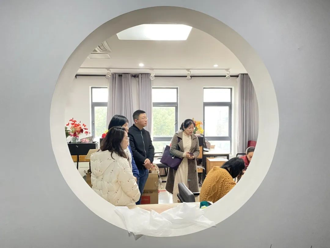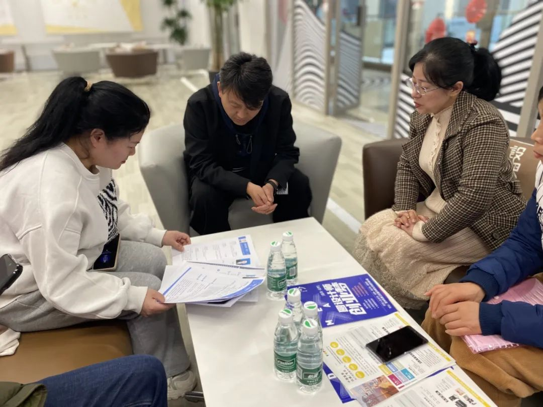在走访苏州设天下科技有限公司——设界过程中,公司党委副书记周洪英非常关心在岗员工情况,与公司毕业员工和 2024 届实习员工亲切座谈,仔细询问他们在企业的生活、学习和工作情况,鼓励他们努力学习、成长;在与企业深度沟通之后,周书记现场给企业推荐有意向到盛泽赴岗的 2024 届毕业生简历,希望促成还未就业的同学顺利找到合适的工作岗位,尽快就业。企业负责人也表示江服学子在企业的表现非常好,希望后期有更多的优秀学子赴企,同时,还盛情邀请公司在盛泽东纺城办毕业设计展。