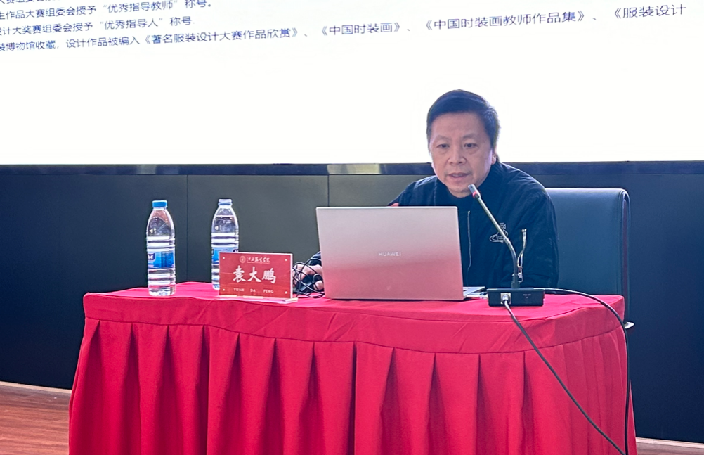 11月17日(周五)下午15:00,公司在行政楼一楼报告厅和腾讯会议线上线下同步举办了第360期博雅讲坛,武汉纺织大学服装公司袁大鹏教授应邀参加学术交流,做了一场题为“唐代古诗词意境视域下的服装设计创新思维与实践”的讲座。MK体育众多师生到场聆听。