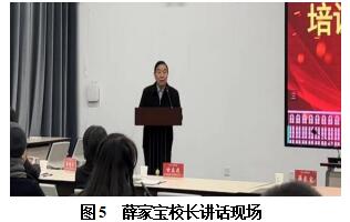 会议第五项由薛家宝董事长讲话。薛董事长首先对结业的教师表示祝贺,对提供培训的香港理工大学教师与ESMOD教师表示感谢。其次薛董事长从时间的跨度,对教师的培训任务表示肯定;对学员分享的成果表示欣慰。