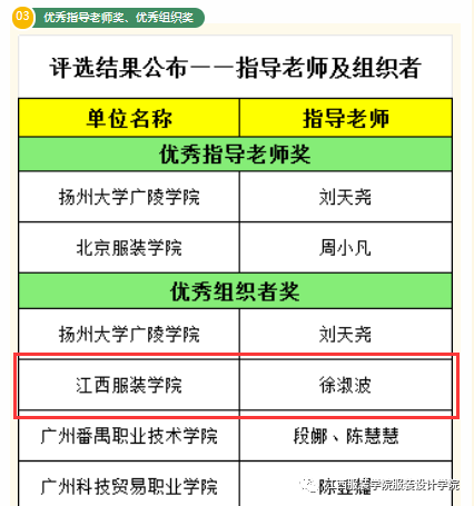 经过了8个月的时间终于在2023年12月20日迎来了决赛,大赛组委会本着客观、公正、严谨的原则,经过作品的征集、初赛、实物制作、专家评议等程序,经过激烈角逐, 公司22 级产品本科2班冯雯欣、 20级服饰本科1班何佳、王岩荣获新锐奖,22级产品本科1班陈睿琦、花梦璇荣获最佳概念奖,徐淑波老师荣获优秀组织者奖,恭喜以上同学和老师获奖!