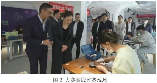 本届大赛分为实践考核和理论考试,公司师生与行业能工巧匠同台竞技,共展风采。赛前员工参观了吴刚大师工作室的珠宝首饰作品,大赛开始后由吴刚大师对大赛要求和大赛内容分别做了说明,它以幽默风趣的发言缓解了选手赛前的紧张;赛中各评委老师对选手在实践中的各项动作规范进行考核打分;赛后主评委著名设计学和美术学专家、国家二级教授支林对实践作品进行了点评。在大赛午餐时间,吴刚大师还特意为公司产品设计专业师生做了主题为“首饰工艺之美”的报告,分享了自己的人生经历和对东西方首饰工艺的理解,阐述了中国传统技艺传承与发展的重要性,并对全体师生寄予厚望。更为难得是还对公司员工的首饰设计作品进行了现场点评和指导,使员工深受启发。