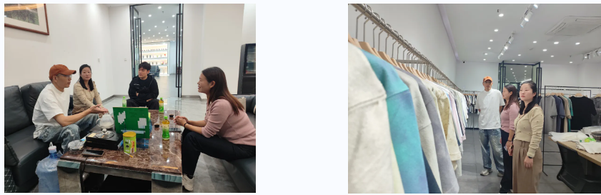 下午,蓝岚一行人在赵依伦员工的陪同下,马不停蹄地前往广州至善服饰设计有限公司、广州聚优实业有限公司、广州云尚贸易有限公司等企业进行实地走访。企业高层代表对公司老师一行的到来表示热烈欢迎。在走访过程中,企业负责人对企业的发展概况、企业文化、业务领域以及人才需求计划进行了全面介绍。蓝岚详细介绍了公司人才培养、教学科研等办学特色,并表示希望以访企拓岗促就业为契机,与企业建立健全长效合作机制,共同构建协同育人新模式,在提升人才培养质量、推进产学研合作、开展实习实训、拓宽就业渠道等方面进行探索,实现校企共赢发展。