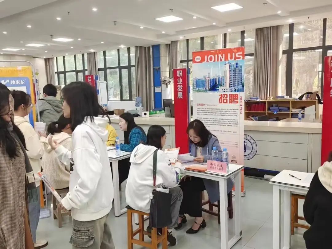 公司党委副书记周洪英及全体毕业班班主任到现场指导,为求职中的同学们提供就业帮扶,就同学们如何选择自己合适的岗位,如何在与面试官交谈中将自己的优势和能力成功呈现等方面提供现场指导。