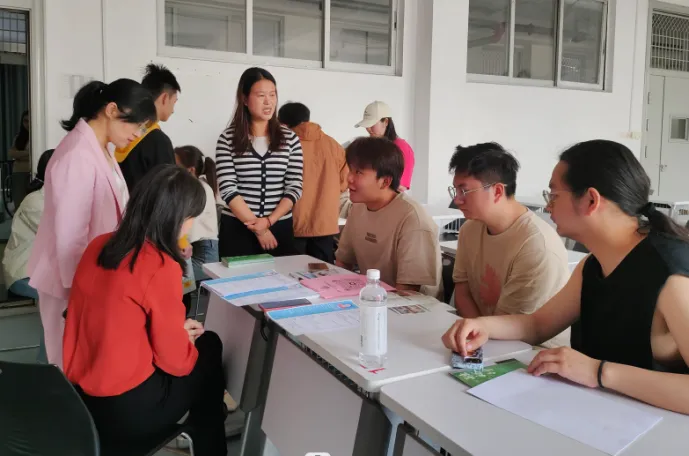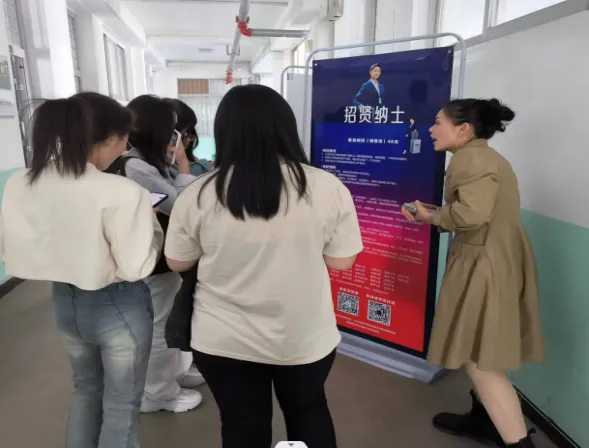 4月22日上午9点,招聘会正式开始。本次招聘会共有来自省内10余家企业参加,提供了上百个优质岗位。企业代表们通过招聘宣讲、发放宣传资料、播放企业宣传片等方式与同学们进行了深入的交流,向同学们详细介绍公司的企业文化、业务范围、薪资待遇以及发展前景。同学们纷纷驻足观看,积极与企业代表互动交流,寻求心仪的就业岗位,现场氛围十分活跃。