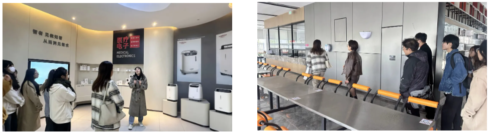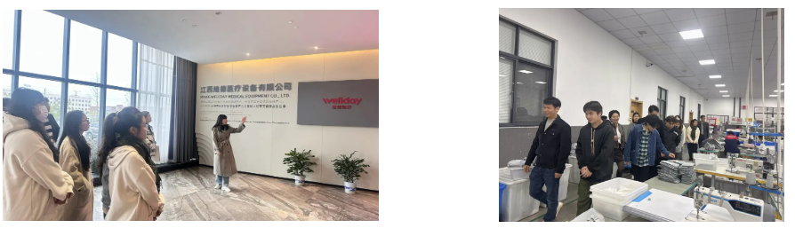 江西维德医疗设备有限公司是一家集家用医疗器械研发、制造、销售和服务于一体的全产业链集团。在企业相关负责人的陪同下带领同学们参观了企业生产车间、企业产品设计研发环境等。