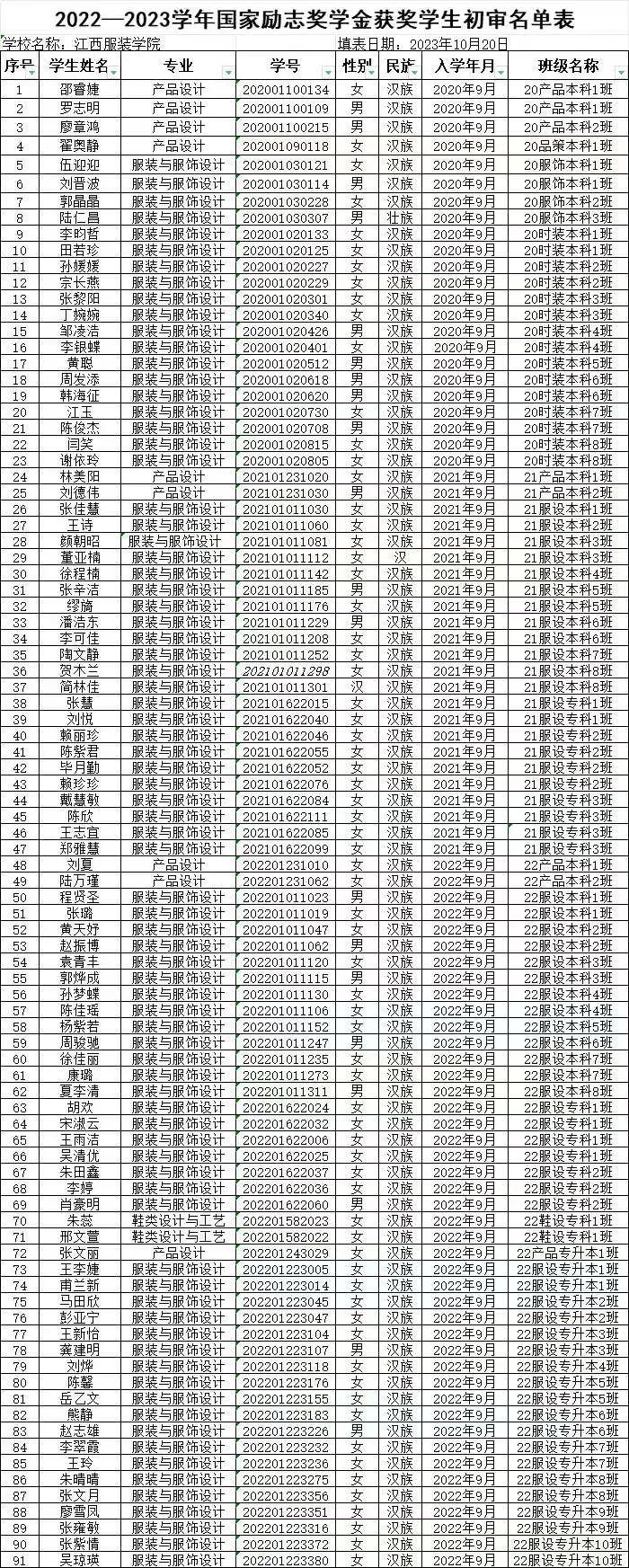 《2022-2023学年MK体育国家励志奖学金候选人名单》