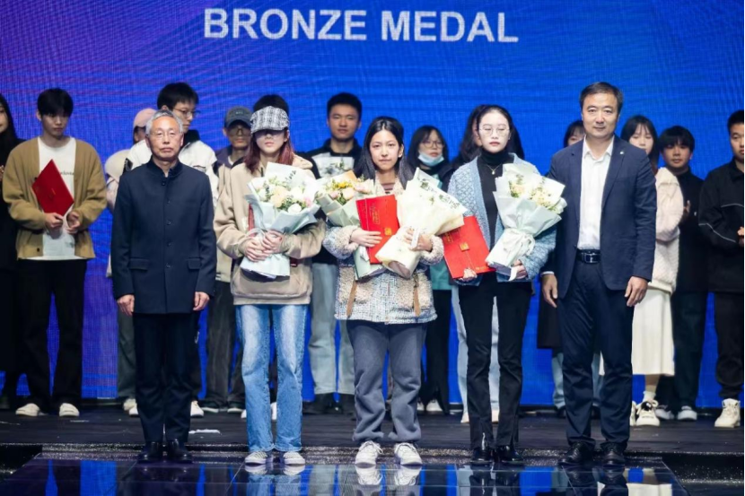 来自22服设专升本7班闵龙辉同学,作品《云深不知处》获得本次金奖、最佳女装奖;20时装本科5班张新顺同学,作品《倔匠》获得本次银奖、最佳工艺奖;20时装本科1班邱文洁同学,作品《Pionier derMenschheit》获得本次铜奖;20时装本科1班李彩瑶同学,作品《雪径穿行》获得铜奖、最具商业价值奖;21服设专科3班谢梨萍同学,作品《区块链》获得本次铜奖!