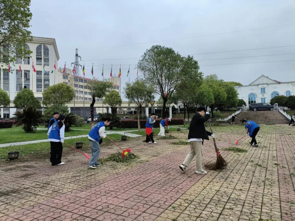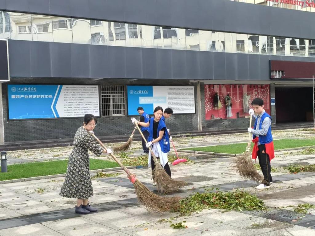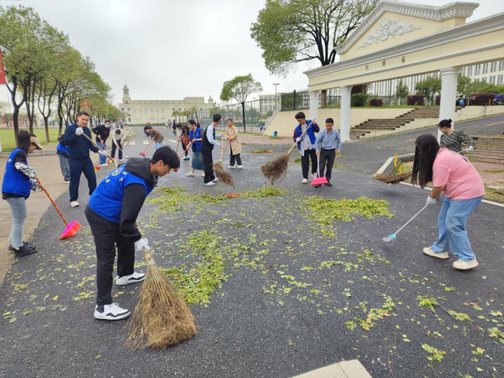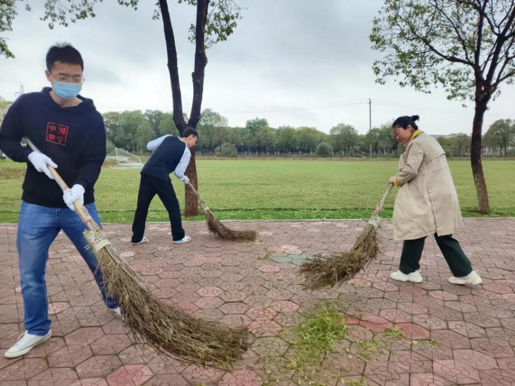 风雨无情人有情,志愿服务暖人心。全体师生党员、入党积极分子发扬不怕脏、不怕苦、不怕累的实干精神,戴着手套,拿着扫具、垃圾袋,深入校园操场、主干道、绿化带等区域清理落叶及各类卫生死角和积存垃圾,师生分工明确、井然有序、干劲十足,用扫帚扫干净路上的树叶、树枝和垃圾,忙碌的身影中散发出美丽的色彩,在师生们的共同努力下,校园卫生面貌焕然一新。