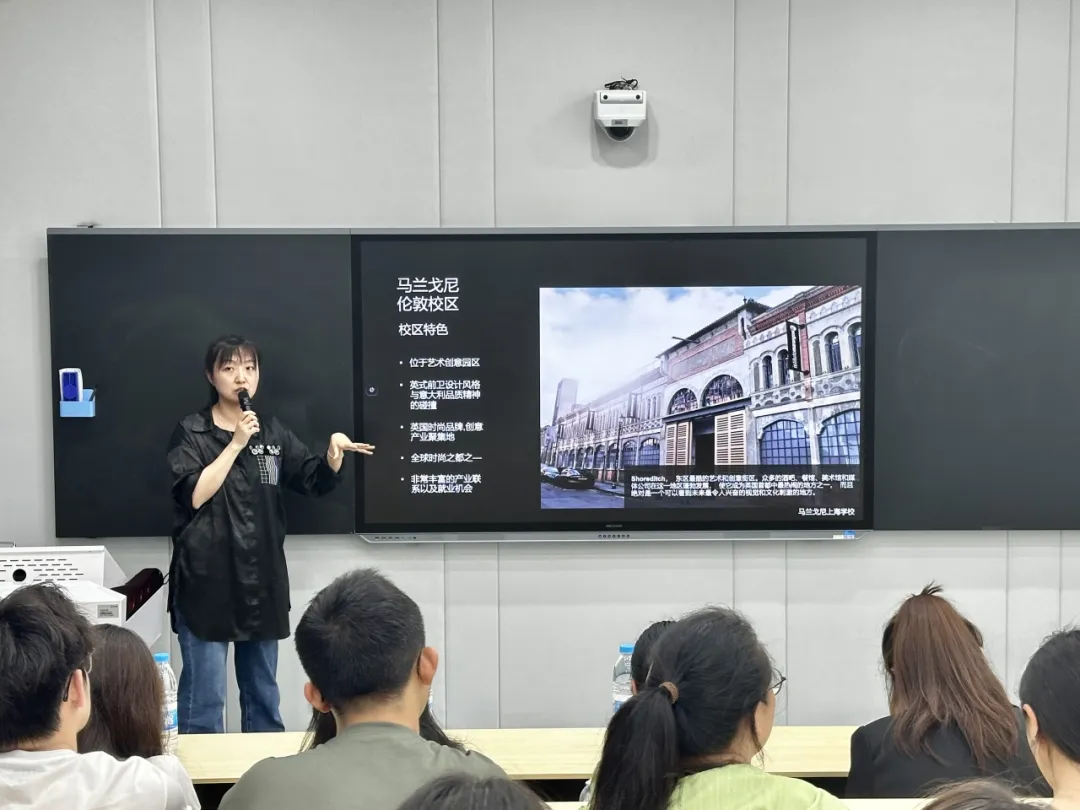 会议伊始,黄睿瑶老师向大家介绍讲座的目的及议程,本次上海国际时尚教育中心(SIFEC)带来马兰戈尼(伦敦研究生项目),胡卡&巴自治(西班牙研究生项目)两所公司的相关讯息,为同学们提供了一个客观的咨询平台。