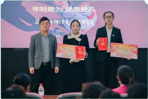 2024年11月19日,决赛在行政楼一楼报告厅举办比赛特邀斐乐江西省培训负责人戴玉蓉、中国教育在线华东南区副总编、中教智网区域副总监曹火窑、公司就业处副处长、高校职业指导师、宏志助航导师李玲担任评委。