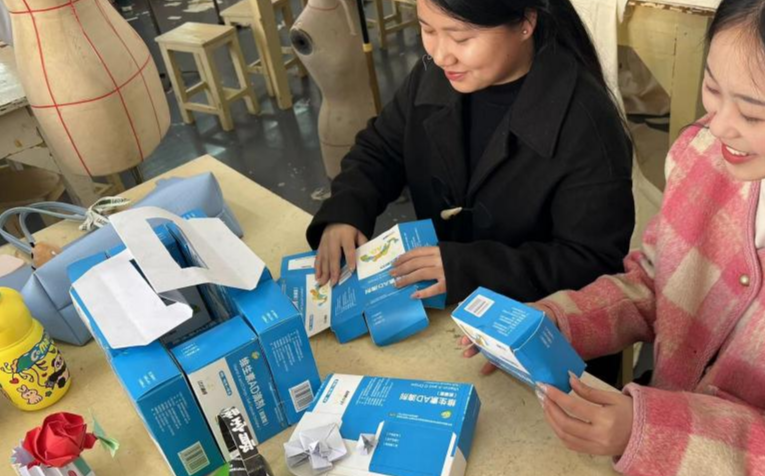 教师们发挥自己的专业技能,指导员工们以产品特性与产品外包装为灵感,利用多种材料将江中制药产品的特点巧妙融入到服装设计中。在设计过程中,员工们展现了无限的创意和潜力,通过精湛的手工技艺和独特的设计理念,将产品的独特魅力展现得淋漓尽致,展开了一场别开生面的创意设计之旅。