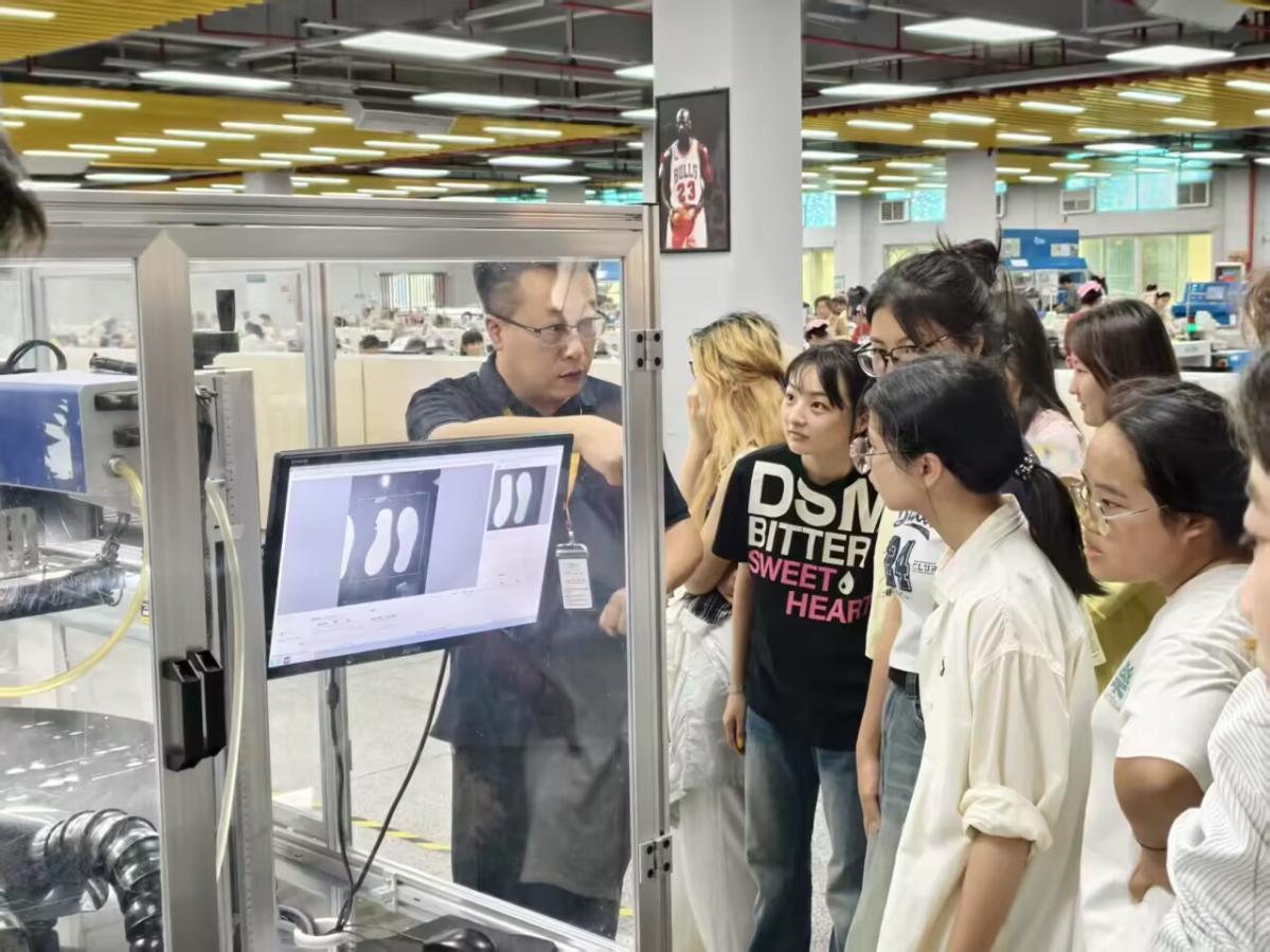 接着又来到了自动化生产车间,宗协理不仅耐心细致地阐述了每一道制鞋工序的精髓与所面临的挑战,还凭借其深厚的行业洞察力,深刻剖析了当前制鞋行业的整体动态和趋势。从市场需求的变迁、消费者偏好的趋势,到行业面临的种种机遇与挑战,同学们积极地提出自己的问题与想法,与老师同学探讨交流。不论问题简单与否,老师非常耐心地为同学们解答,现场的学习氛围渐渐变得浓厚起来。关于设计创新、工艺改良等方面的疑问,宗经理都耐心解答,并积极分享在制鞋工艺领域的丰富经验和独到见解。鼓励同学们勇于创新,敢于挑战自我,紧跟行业发展步伐,不断探索新领域和技术。宗协理的话语充满了激励与期望,让同学们倍感振奋。
