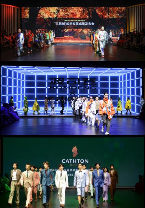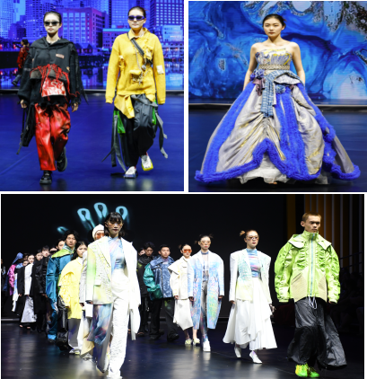 成果展以服装动态秀为主,辅以静态作品展示。此次产教融合项目教学成果展在400余名员工、20名企业导师的共同努力下,通过第一学期设计稿的绘制、纸样的确定,以及本学期成衣的制作,筛选出服装设计作品成衣约300余件及首饰、箱包、鞋子等产品参加教学成果展。本次参与成果展的项目有马克·蝶丽奥那婚纱礼服项目、赫利童装项目、卡私顿高定项目、三维潮牌项目、波司登(羽绒服)项目、新中装高定项目、武学伟&武学凯伯仲(羽绒服)项目、CHEN1988女装项目、品牌管理等项目。