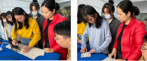 下午,工艺老师徐智凤为同学们带来了一堂近距离的女装基础工艺技术课。徐智凤老师首先通过讲授与实操演示结合的教学方法,为同学们讲解了衬衫的整烫与缝制工艺。上课过程中,同学们的学习积极性很高,自告奋勇地表示要当场进行实际操作练习,练习的过程中,徐智凤老师在一旁,对同学们进行指导。