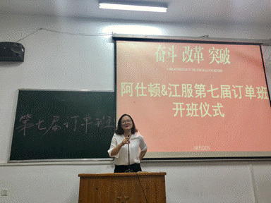 公司与阿仕顿服饰有限公司长期合作以来,良好的合作模式发展培养了大量的实用型、技术型人才。负责人冯秋然对同学们介绍了阿仕顿的培养人才方案以及对大家的福利政策。订单班的优秀员工潘杨学长与大家讲述了自己的亲身经历和个人感受。他与大家的交流十分亲和,讲到了他初入企业时的迷茫和真正进入阿仕顿公司工作后,一切问题的迎刃而解。