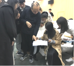 武老师于周日上午在图书馆试听厅为员工作品进行初步点评,后由员工一个一个上台PPT讲解自己的设计主题、灵感来源及款式,武老师逐个进行点评,提出每个员工作品的优点及不足之处。