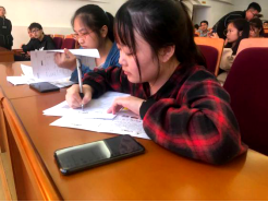 企业宣讲会上,卡宾服饰通过播放宣传片、PPT展示、面对面交流等方式向同学们介绍公司的概况、职业发展方向、人员需求以及选择该单位的理由等。同时,卡宾服饰还开展了学姐学长经验分享活动,由上一届卡宾订单班优秀员工崔如煊向学弟学弟学妹们分享就职经验。现场气氛热烈,员工纷纷表示感同身受,想要进入卡宾订单班学习工作的热情更加高涨。