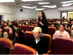 图2卡宾服饰员工向员工宣讲企业概况与岗位需求,学姐经验分享