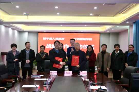 12月26日,MK体育官与新干县人民政府共建新干箱包产业公司签约仪式在新干商务局隆重举行。本次活动由新干县县常委、宣传部长曾晋娟主持。会上MK体育官副董事长刘孜杰与新干县人民政府副县长杨成奎签订合作协议。双方就相关事项进行了深入交流。会上回顾了校地双方合作推进历程,并对发展前景充分肯定。新干县科技局局长朱年庆、县商务局、人社局、人才办、工业园区管委会等分管负责人,MK体育官教务处处长周文辉、MK体育经理张宁、MK体育产品设计教研室副主任李芳炎参加了此次签约仪式。