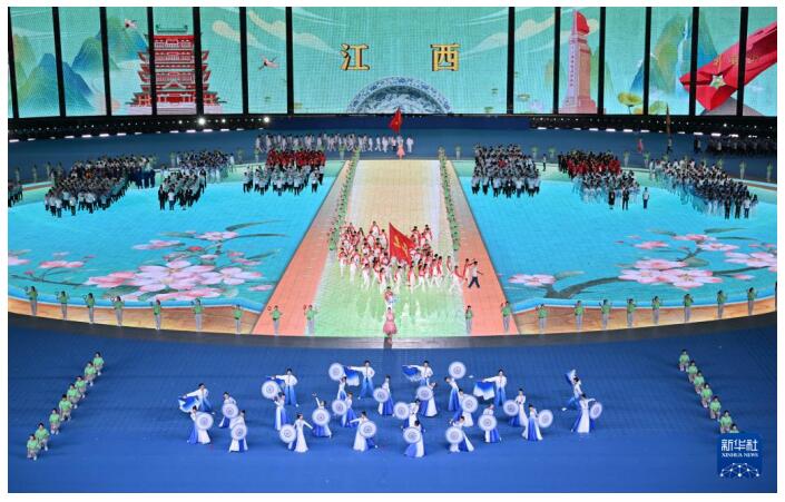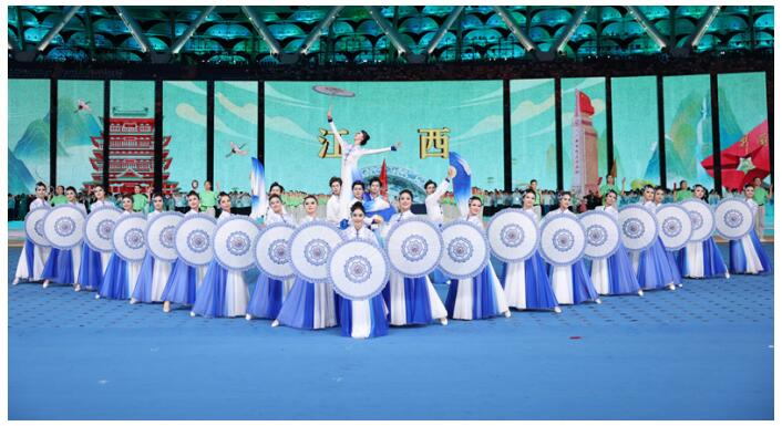 图1江西体育代表团30秒驻停表演《青花之舞,瓷韵飞扬》